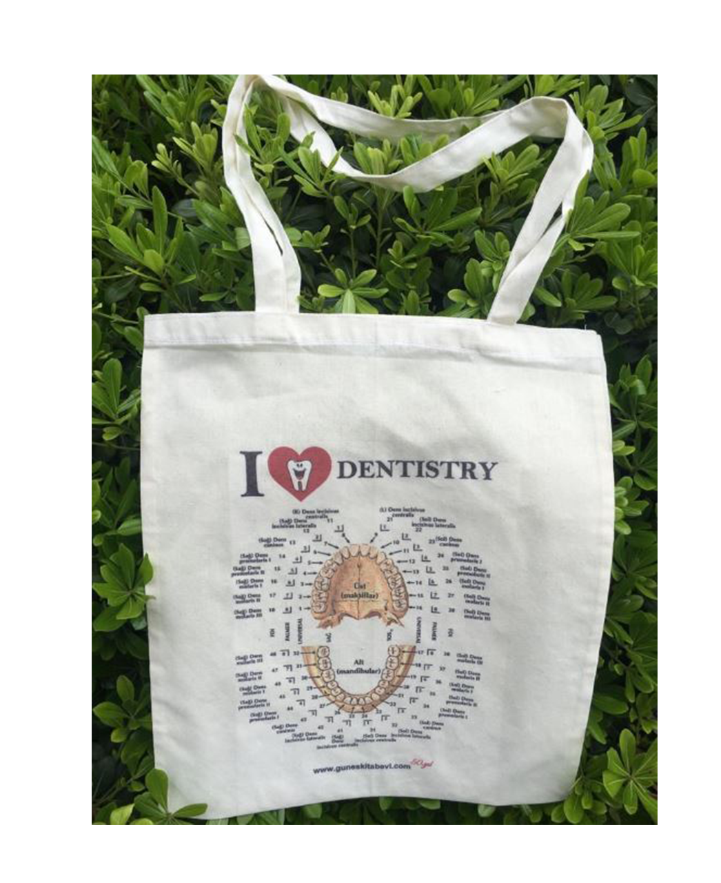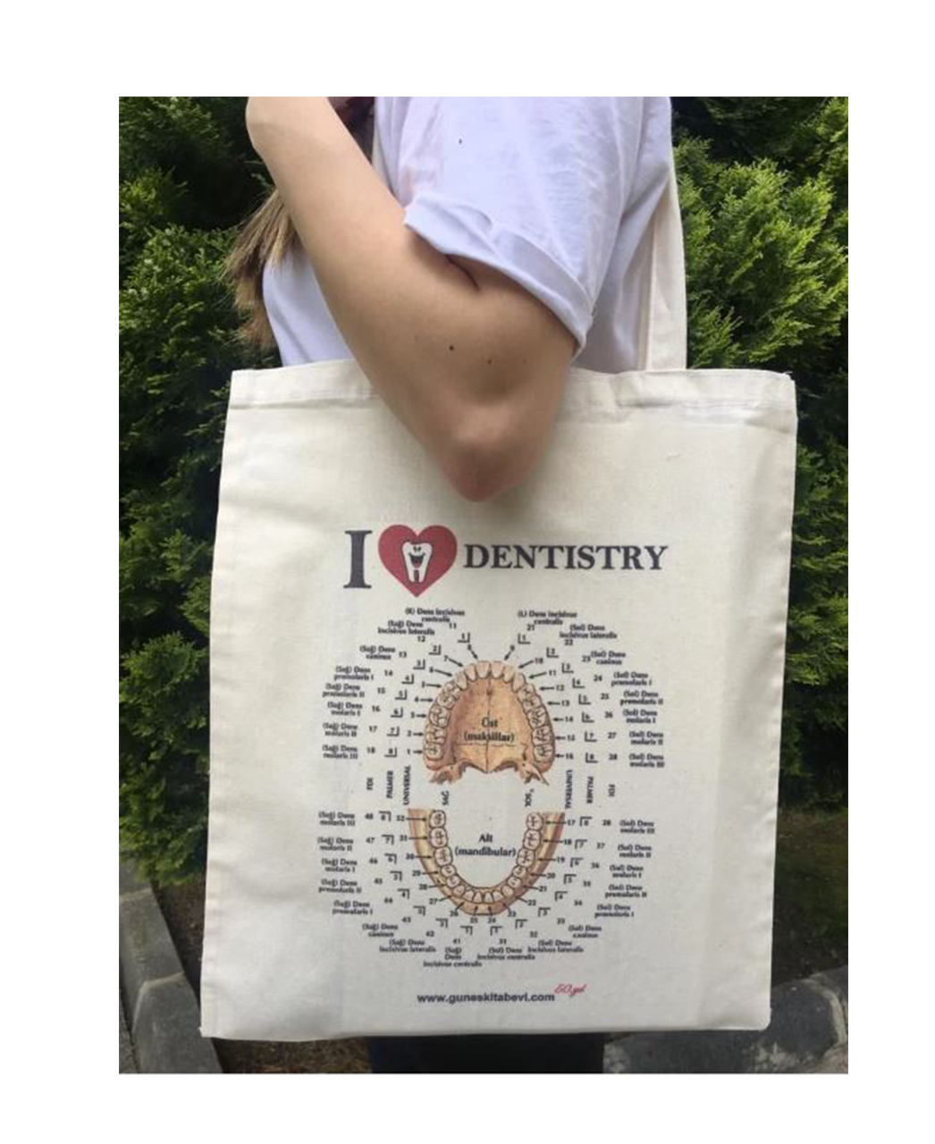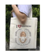 Günlük kullanım, klinik ve kampüs için ideal! Krem renkli, Love Dentistry baskılı bez çanta; hafif, dayanıklı ve stil sahibi tasarımıyla diş hekimleri ve diş hekimliği öğrencileri için mükemmel bir tercih.