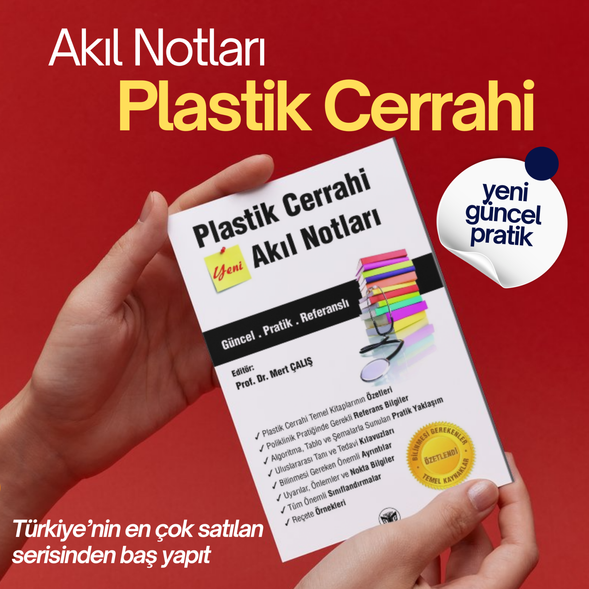 💬 Prof. Dr. Mert Çalış editörlüğünde hazırlanan Plastik Cerrahi Akıl Notları, plastik, rekonstrüktif ve estetik cerrahinin öz bilgilerini pratik, akıl notu formatında bir araya getirir. 520 sayfa, 2025 baskı; 12 x 21 cm elde rahat taşınan ebat; kuşe renkli sayfalarla net görseller ve okunabilirlik. Klinik pratikte hızlı erişim, sınava hazırlıkta odaklı tekrar ve güncel yaklaşımlar bir arada. ISBN: 9786256065345.